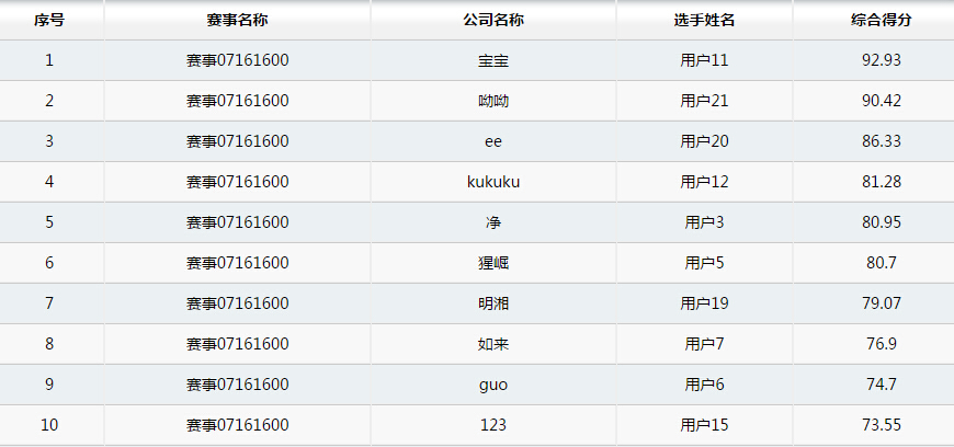 1号服务器20160716 10:00成绩